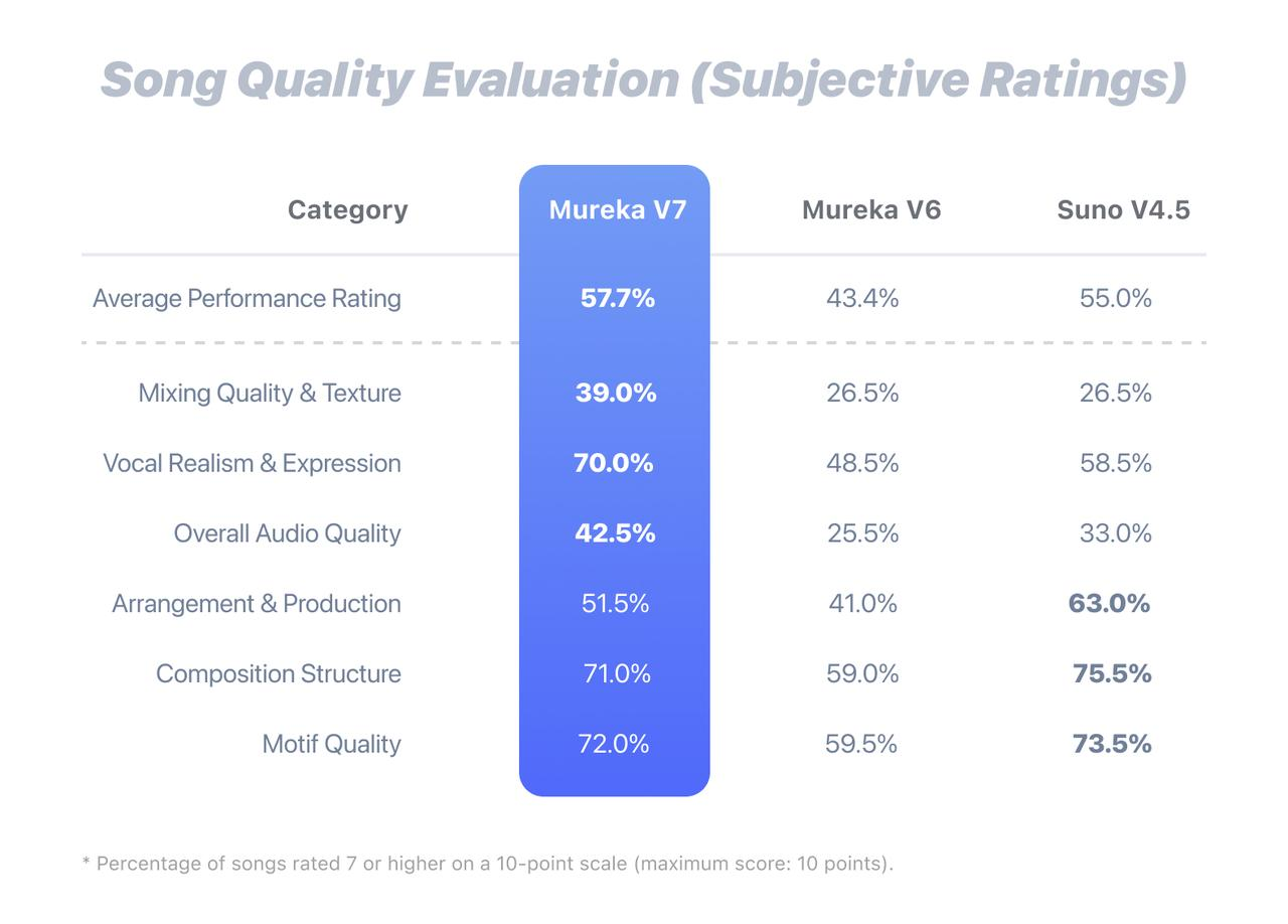 这就好比写作先列提纲,作画先构图,确保了最终生成的作品拥有更自然的乐章推进、更流畅的旋律连贯性和更完整的音乐结构。正是这项技术,让Mureka在主观听感和客观评测指标上均达到了行业一流水准。