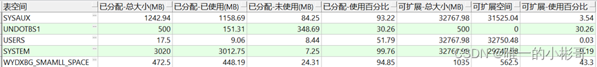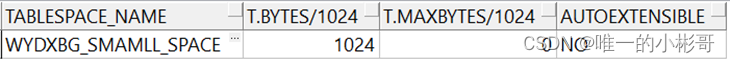 所以从上面可以得出结论BYTES是初始化的空间也是自动扩展后的空间,而MAXBYTES则是最大允许扩展的空间,且要是文件不可自动扩展该值会为0。而我们可发现其实网络上几乎大部分的表空间查询语句基本都是基于BYTES来计算的,所以如果表空间存在自动扩展的情况误差就会极大,而直接统计MAXBYTES则也可能存在错误,所以合计数据时我们需要同时考虑BYTES和MAXBYTES,应当取MAXBYTES而当该值为0时则取BYTES。