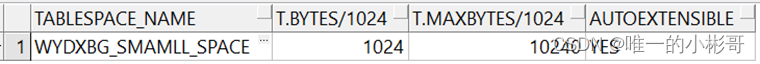ALTER TABLESPACE WYDXBG_SMAMLL_SPACE ADD DATAFILE 'D:\APP\ORACLE\TABLESPACE\WYDXBG01.DBF' SIZE 1M AUTOEXTEND ON NEXT 1M MAXSIZE 10M;