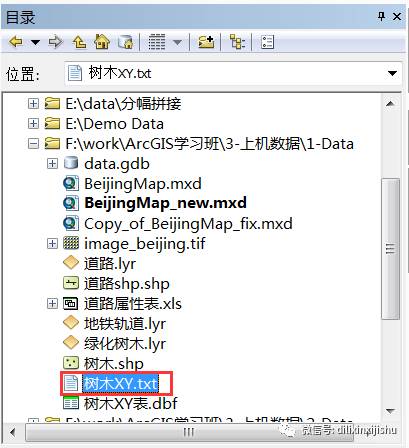 [5]连续单击【确定】,回到【目录】窗口,查看【1-Data】,增加【树木XY.txt】,如下图。