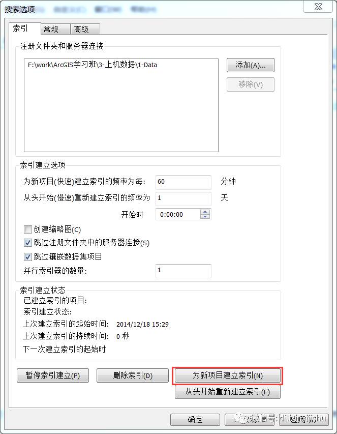 [8]单击【为新项目建立索引】,开始创建索引,索引创建状态发生变化,如下图;