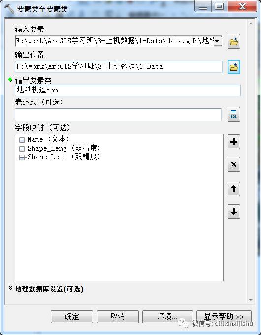 [4]弹出【要素类至要素类】工具,输入要素已选择【地铁轨道】,输出位置选择【1-Data】文件夹,输出要素类名称为【地铁轨道shp】,其他参数默认;