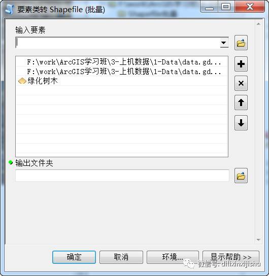 [11]单击【添加】,回到【要素类至Shapefile(批量)】工具,单击【确定】,开始运行,待运行结束查看【1-Data】->【Shapefile批量】,新增3个Shapefile文件,如下图;