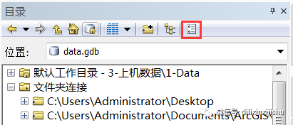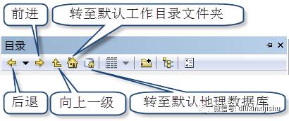 [3]在【目录】窗口,单击后退、前进、向上一级、转至默认工作目录文件夹、转至默认地理数据库按键,了解每种按键的用途;