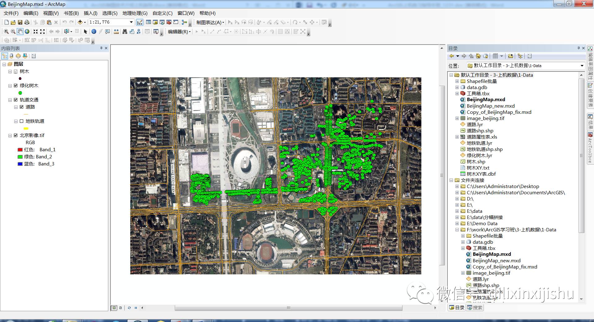 [4]打开地图文档,定位到【1-Data】->【BeijingMap.mxd】,双击【BeijingMap.mxd】,如下图;