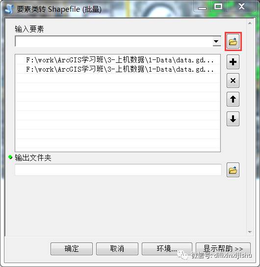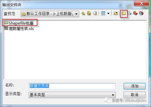 [10]单击输出文件夹旁的【浏览】,选择【1-Data】文件夹,单击【新建文件夹】,命名文件夹为【Shapefile批量】,如下图;