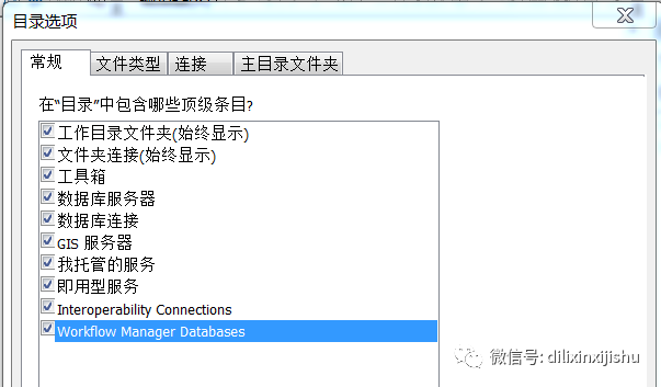 [1]回到ArcMap,单击【标准工具条】->【目录】,打开【目录】窗口,单击【选项】;
