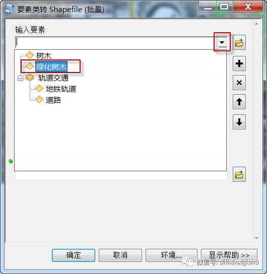 [7]弹出【要素类至Shapefile(批量)】工具,可以看到,【地铁轨道】已加入列表中,单击输入要素旁的【浏览】,弹出【输入要素】窗口,选择【1-Data】->【data.gdb】->【道路】,单击【添加】,如下图;