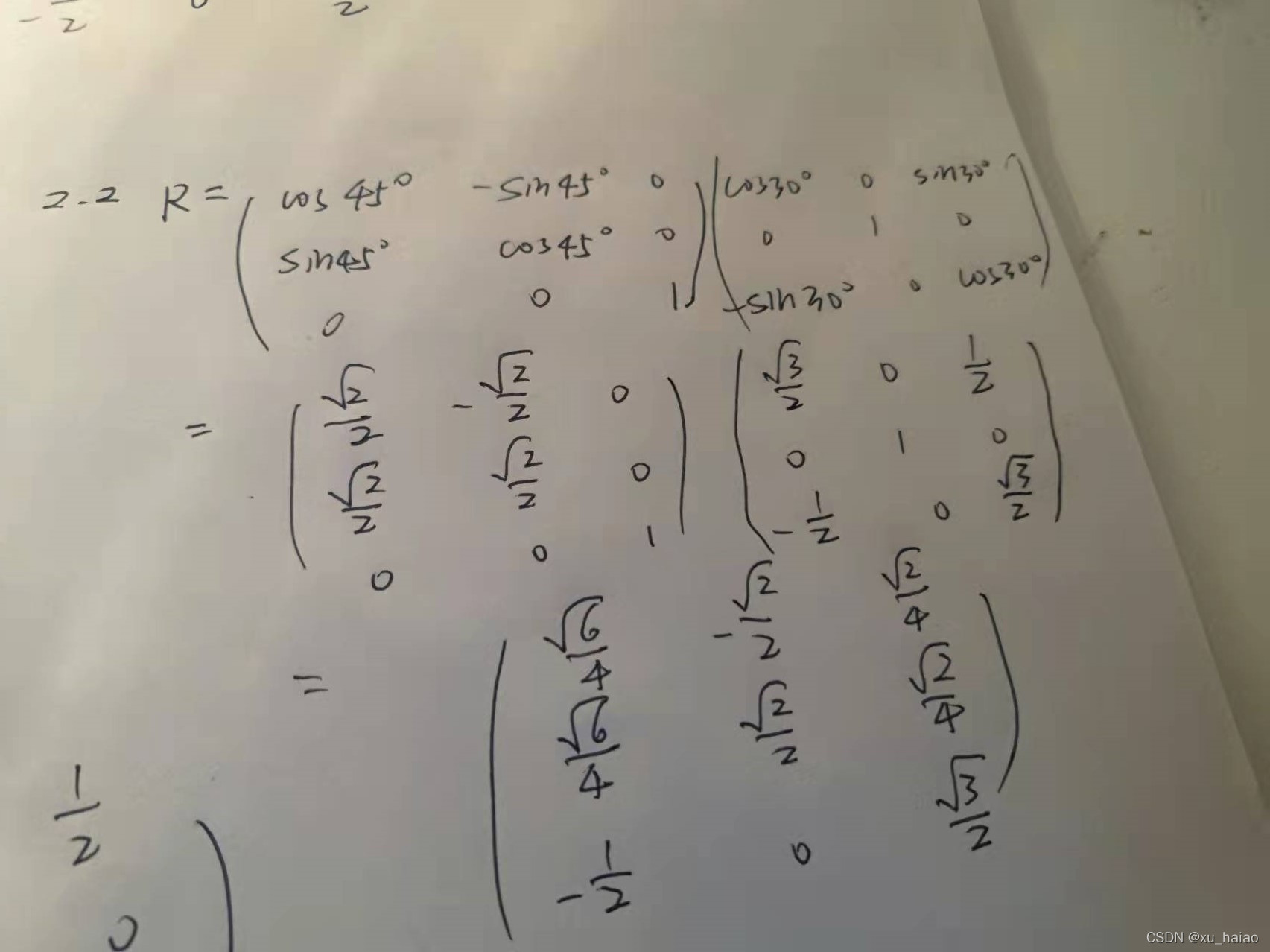 1.根据定义:旋转矩阵的各列模均为1,并且这些单位矢量均相互正交,有: