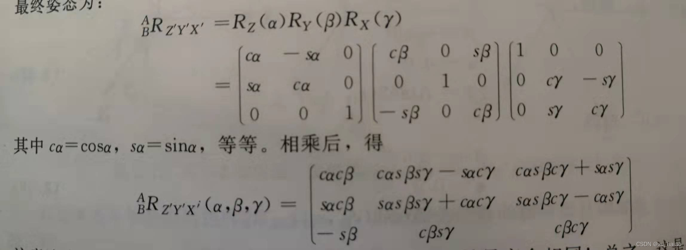 X-Y-Z固定角的逆问题 角度求解公式 p 29