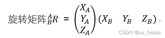 2.旋转矩阵的列描述的是B的单位矢量在A中的描述,所以旋转矩阵的行就是A的单位矢量在B中的描述。