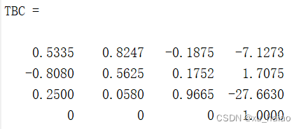 TCU = [0.866 -0.5 0 -3;0.433 0.75 -0.5 -3;0.25 0.433 0.866 3;0 0 0 1];