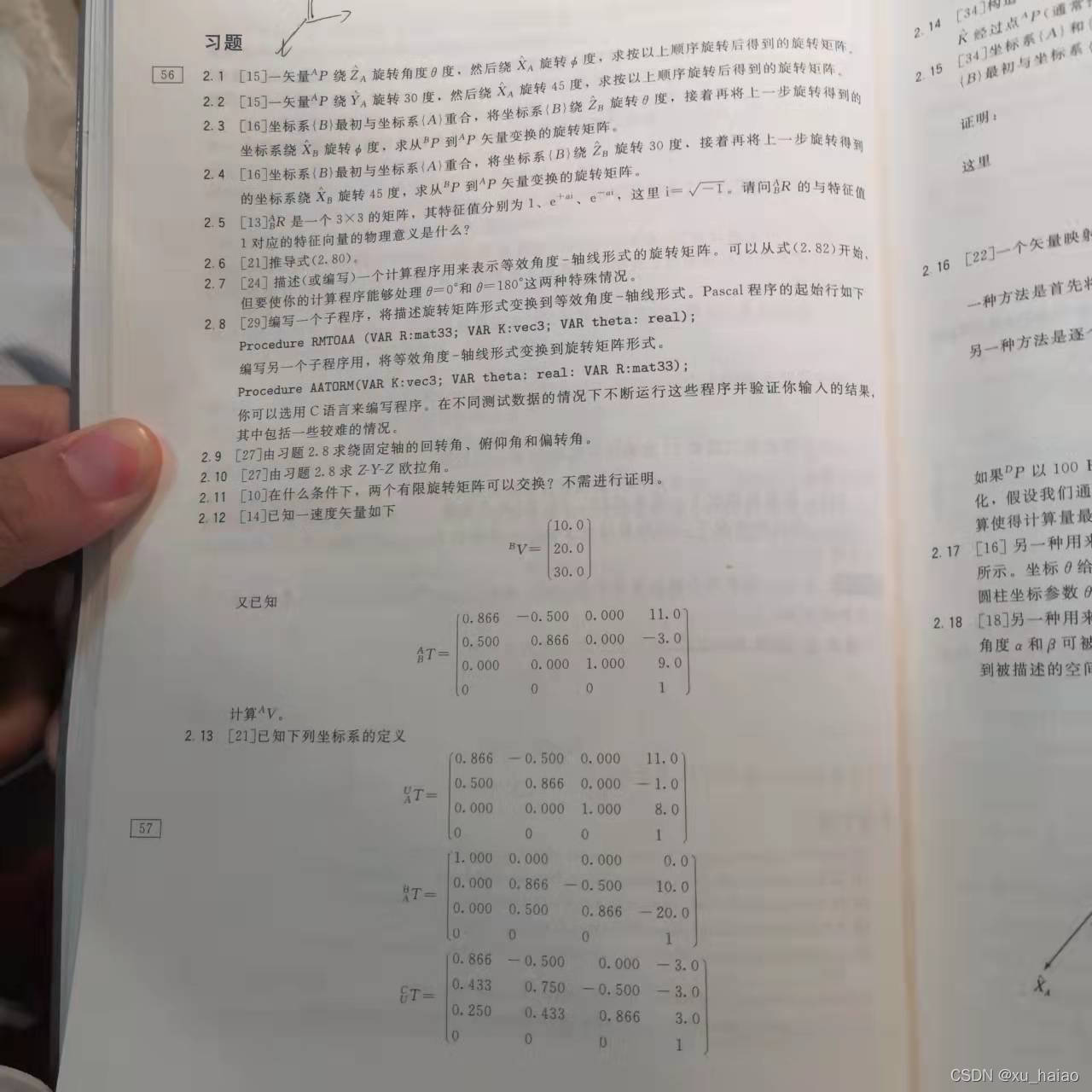 5.位姿 = 位置 + 姿态(四个矢量成一组表示位姿) p15