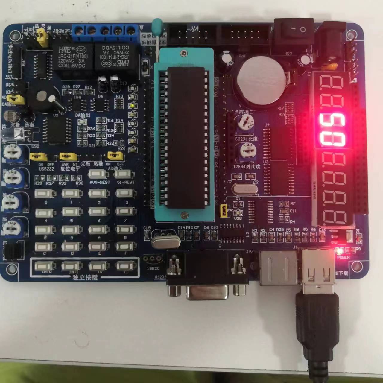 一套STC89C52RC开发板套件,包括STC89C52RC开发板,以及USB烧录线。