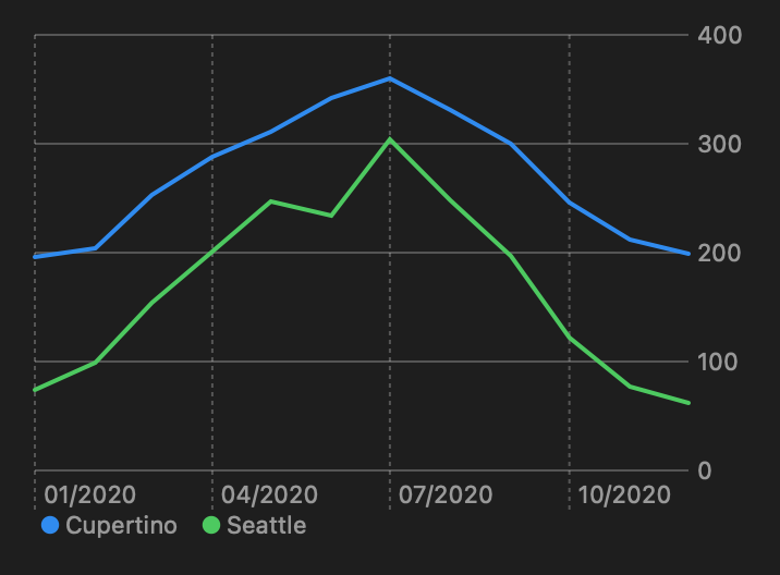 Swift Charts 报错:Initializer ... requires that .. conform to ‘Identifiable‘ 解决办法是将MonthlyHoursOfSunshine结构修改为Identifialbe。