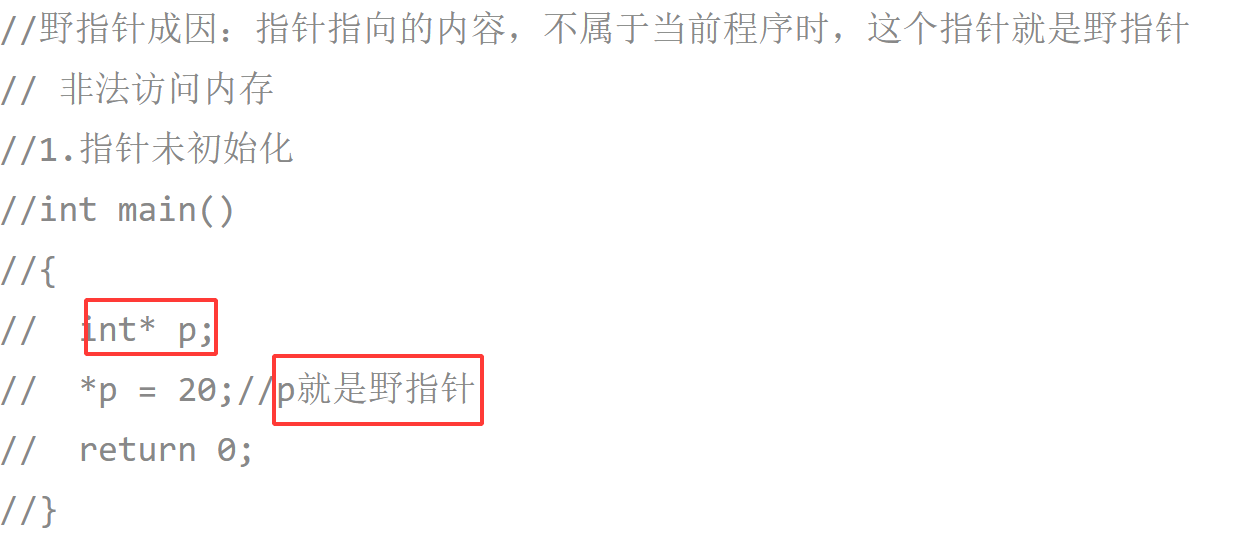 野指针成因:指针指向的内容,不属于当前程序时,这个指针就是野指针,相当于非法访问内存