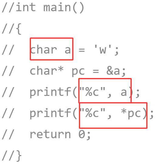 这里打印a和打印*pc结果是一样的,都是'w'