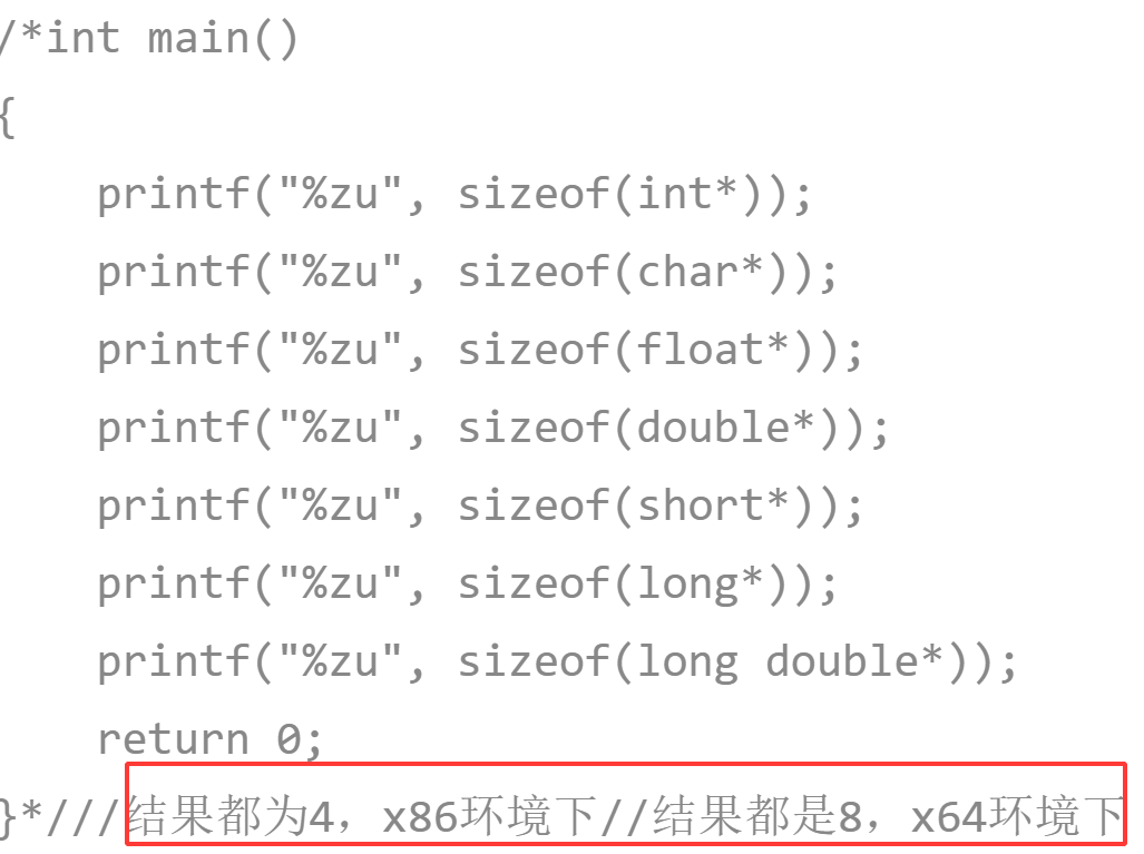 那么在x86(32位环境下),一个地址的大小是32个比特位==4个字节,所以在32位环境下
