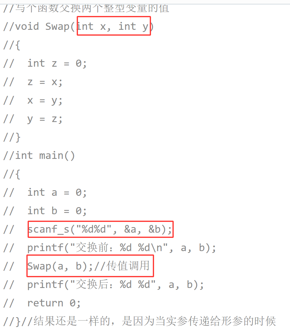 实参传递给形参的时候,形参是实参的一份临时拷贝,对形参的修改不会影响实参