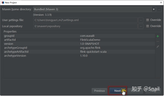 第四步:选择对应的archetype,比如,这里我选择flink-quickstart-scala,如下所示: