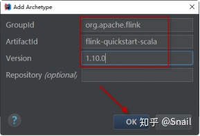 添加flink-quickstart-scala的archetype如下图:repository是可选的