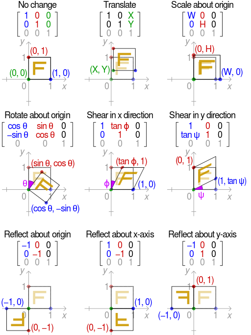 如果 x 和 y 是一个点的坐标,则可以通过简单的乘法进行变换: