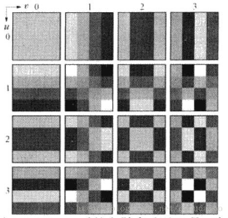 图1. n=4时的DCT基函数对应的基图像