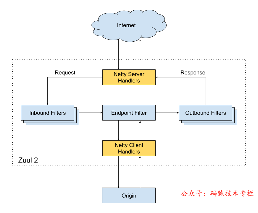 上图是Zuul2的架构,和Zuul1没有本质区别,两点变化: