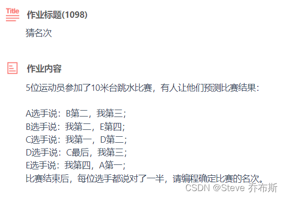 if (((B == 2) + (A == 3) == 1 && (B == 2) + (E == 4) == 1 && (C == 1) + (D == 2) == 1 && (C == 5) + (D == 3) == 1 && (E == 4) + (A == 1) == 1) == 1);
