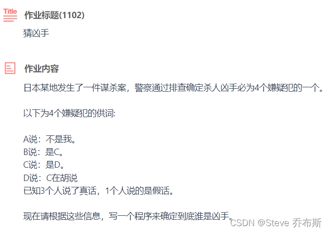 if ((killer != 'A') + (killer == 'C') + (killer == 'D') + (killer != 'D') == 3)