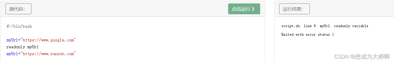 Shell学习 在 Shell 中,用括号来表示数组,数组元素用"空格"符号分割开。定义数组的一般形式为:数组名=(值1 值2 … 值n)# 或者value0value1value2value3# 还可以单独定义数组的各个分量:可以不使用连续的下标,而且下标的范围没有限制。