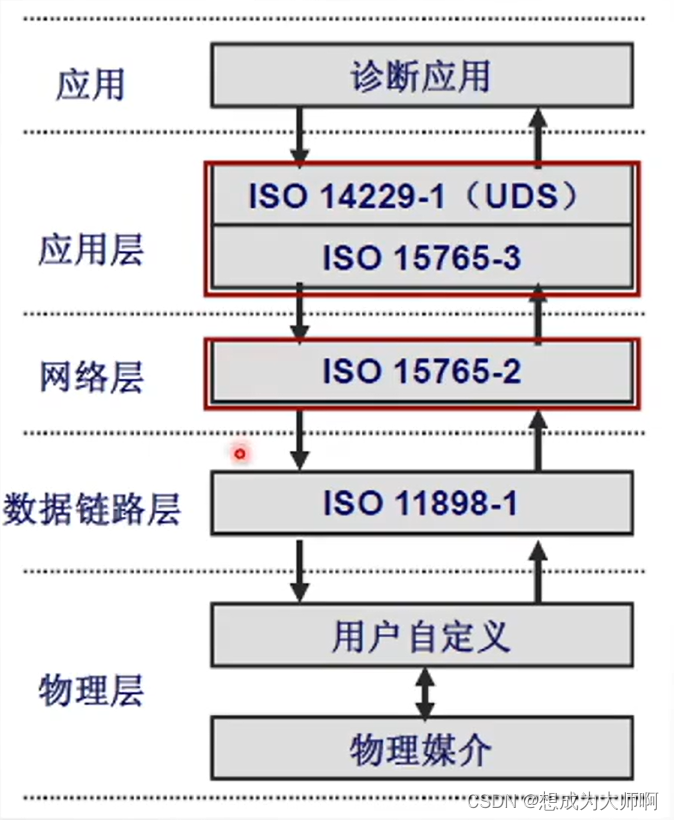汽车网络架构与常用总线汇总 是控制器局域网Controller Area Network 的缩写,1986年,由德国Bosch公司为汽车开发的网络技术,主要用于汽车的监测与控制,目的为适应汽车“减少线束的数量”“通过多个网络进行大量数据的高速传输”的需求。汽车网络是将汽车上所有电子传感器、执行器和电子控制单元(ECU)连接组网的通信形式。根据通信速率,汽车工程师协会(SAE)定义了如下类别的汽车网络。并接到同一总线时,只要其中一个节点输出低电平,总线就为低电平;定义:CAN收发器逻辑信号和物理信号之间的转换采用。