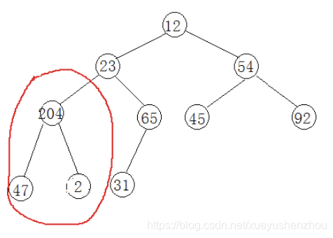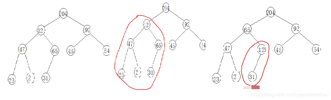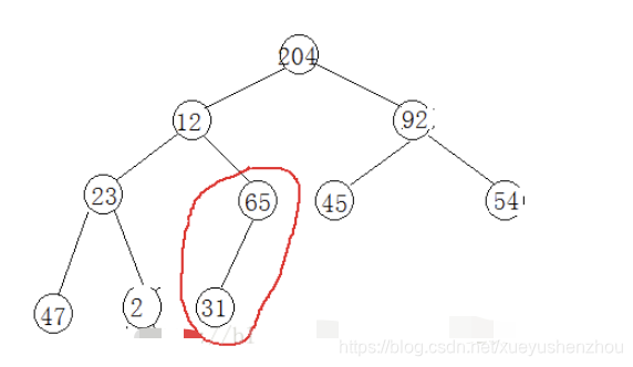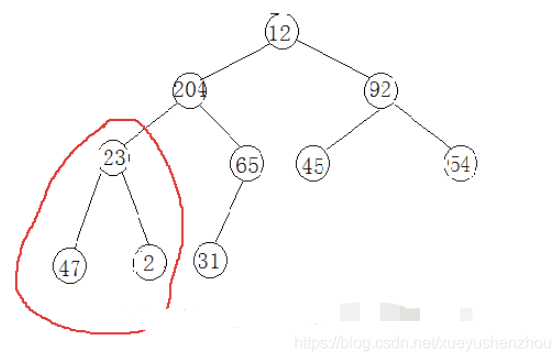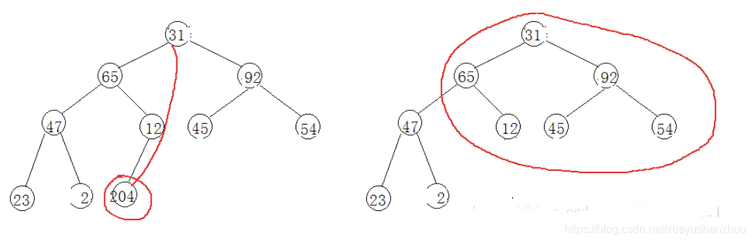 2、i= i-1;然后用2和其孩子比较,2和204交换。交换之后满足大堆