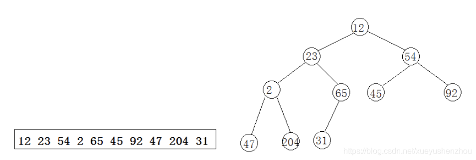 使用数组构建堆时,就是先按照层次将所有元素依次填入二叉树中,使其成为二叉树,然后再不断调整,最终使其符合堆结构。