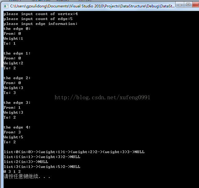 if(输出的顶点数目<|V(G)|)//若此条件不成立,则表示所有顶点均已输出,排序成功。