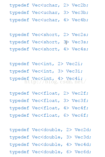 opencv中使用vec可表示向量,用于矩阵元素的表达。