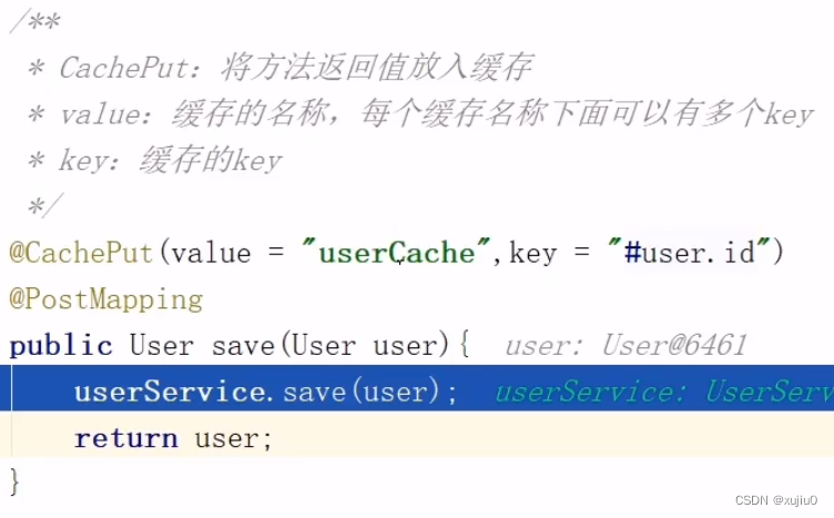 (1)保存@CachePut(value="",key="#user.id")或者#result