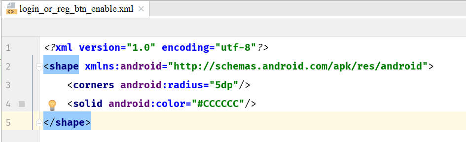 <shape xmlns:android="http://schemas.android.com/apk/res/android"> <corners android:radius="5dp"/> <solid android:color="#CCCCCC"/> </shape>