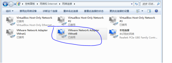 物理机的虚拟网卡 VMnet8的状态,保证启用状态