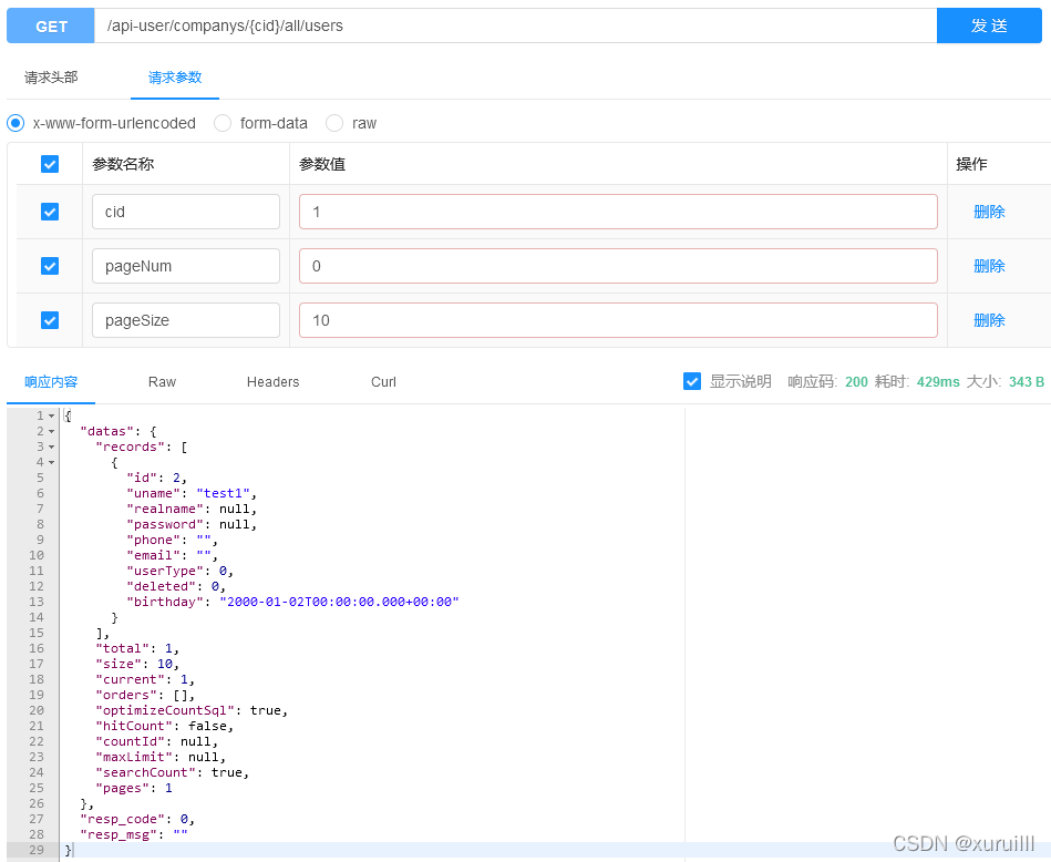 swagger页面测试: