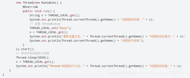 另外,线程池中的线程使用完毕ThreadLocal后,不主动调用remove,还可能造成:get值时,get到上一个任务set的值,直接造成程序错误。