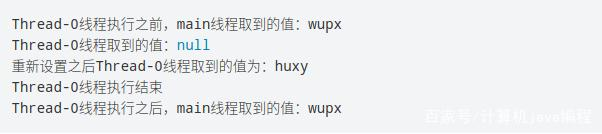 首先在 Thread-0 线程执行之前,先给 THREAD_LOCAL 设置为 wupx,然后可以取到这个值,然后通过创建一个新的线程以后去取这个值,发现新线程取到的为 null,意外着这个变量在不同线程中取到的值是不同的,不同线程之间对于 ThreadLocal 会有对应的副本,接着在线程 Thread-0 中执行对 THREAD_LOCAL 的修改,将值改为 huxy,可以发现线程 Thread-0 获取的值变为了 huxy,主线程依然会读取到属于它的副本数据 wupx,这就是线程的封闭。