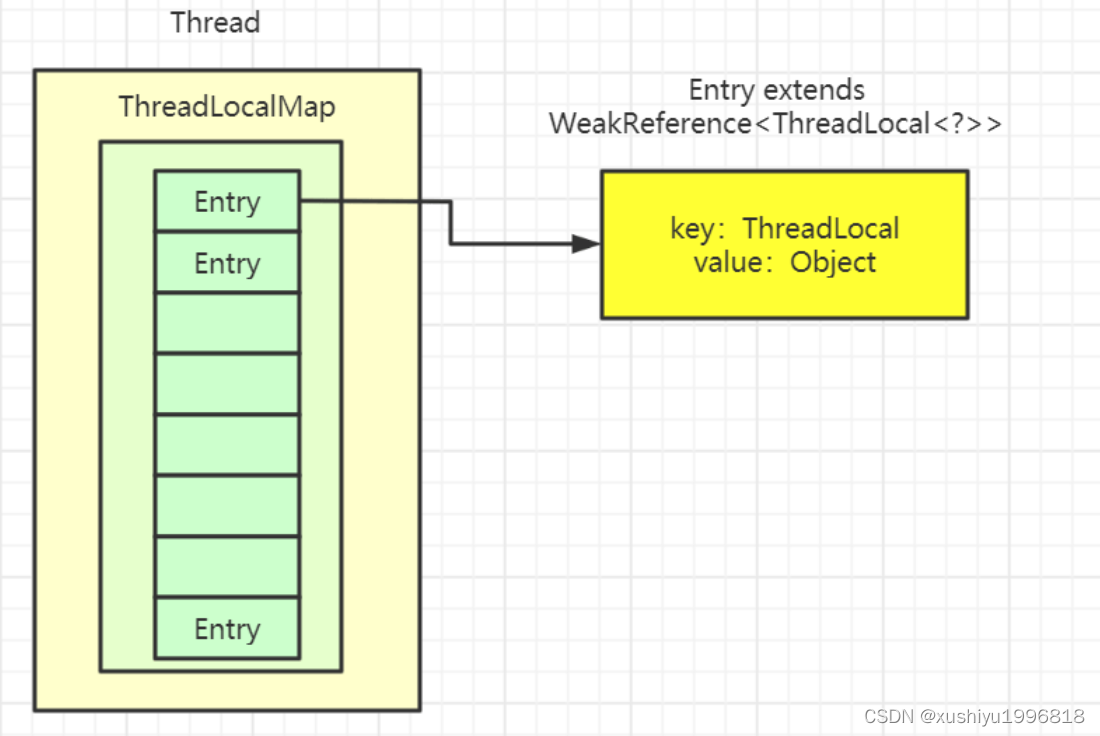 线程运行时,我们定义的TheadLocal对象被初始化,存储在Heap,同时线程运行的栈区保存了指向该实例的引用,也就是图中的ThreadLocalRef。