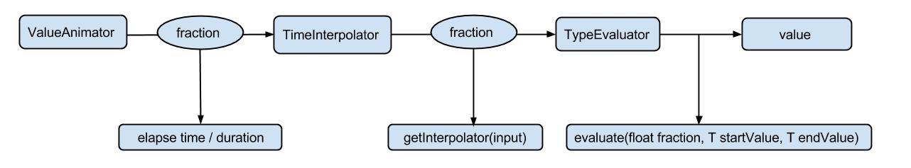 Evaluators 告诉属性动画系统如何去计算一个属性值。它们通过Animator提供的动画的起始和结束值去计算一个动画的属性值。