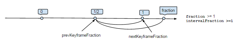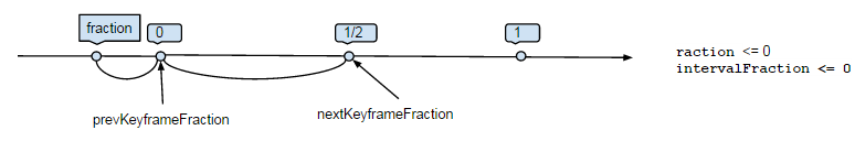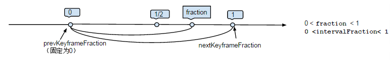 以上分析引入了两个概念:已完成动画分数(elapsed fraction)、插值分数( interpolated fraction )。