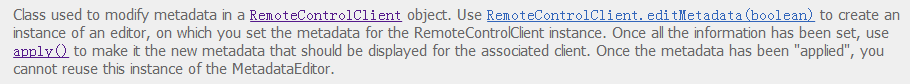 RemoteControlClient暴露信息给具有遥控功能的显示媒体、艺术品和按钮控制设备。(请忽略本人的翻译不准确性)