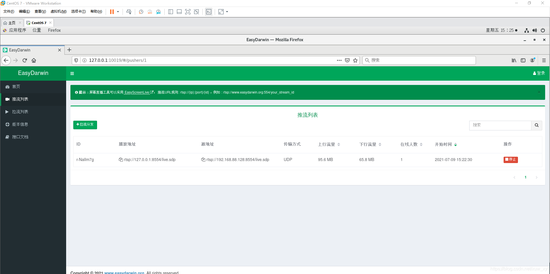 注:流媒体服务部署在centos7.5操作系统上,可直接部署,亦可打包在docker镜像中,通过docker进行部署,已验证ok。
