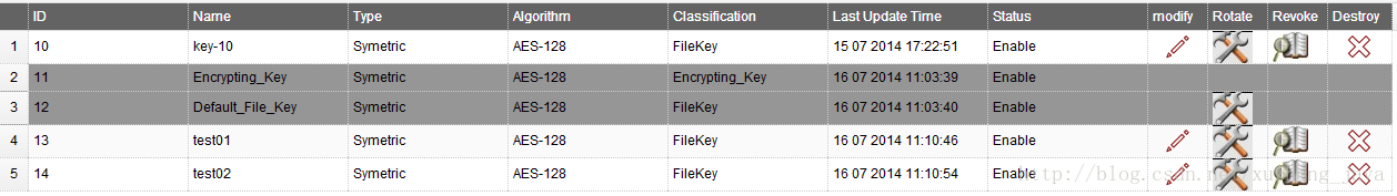 说明:这里将改变列字段为classification为Encrypting_Key和Admin_Key以及列字段name为Default_File_Key数据行显示背景色