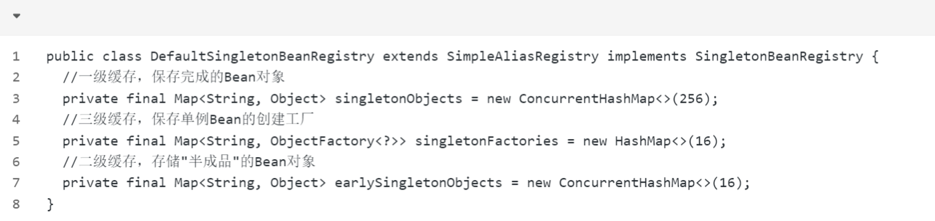 在Spring的BeanFactory体系中,BeanFactory是Spring loC容器的基础接口,其DefaultSingletonBeanRegistry类实现了BeanFactory接口,并且维护了三级缓存。