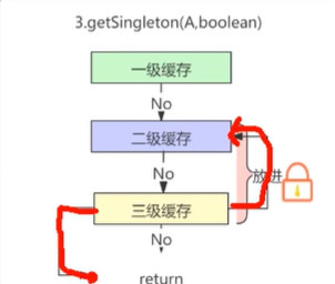 我创建BeanA的时候发现依赖BeanB,创建BeanB的时候,又发现你依赖BeanA,这个时候获取BeanA的第二次,才会去调用三级缓存。